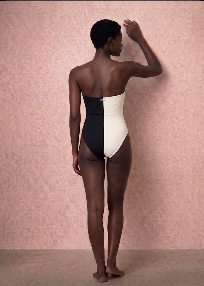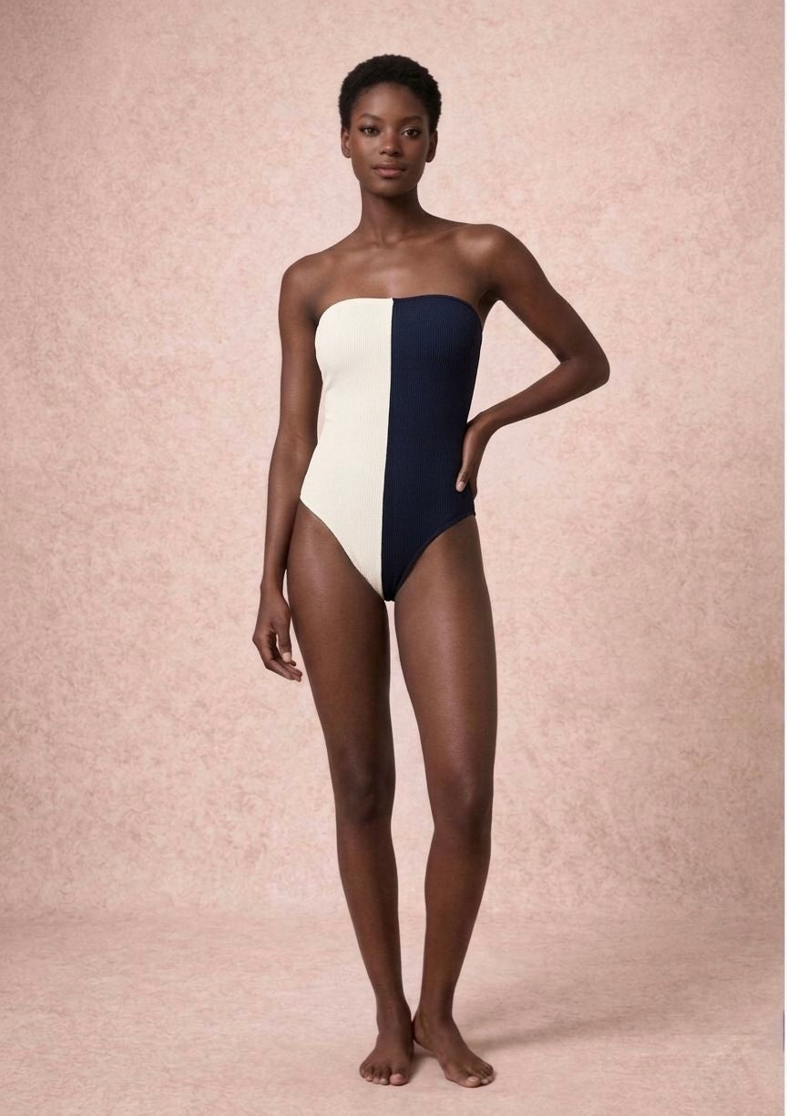 Bañador palabra de honor, con ballenas y tirantes extraíbles.